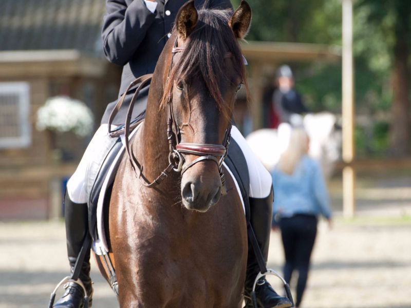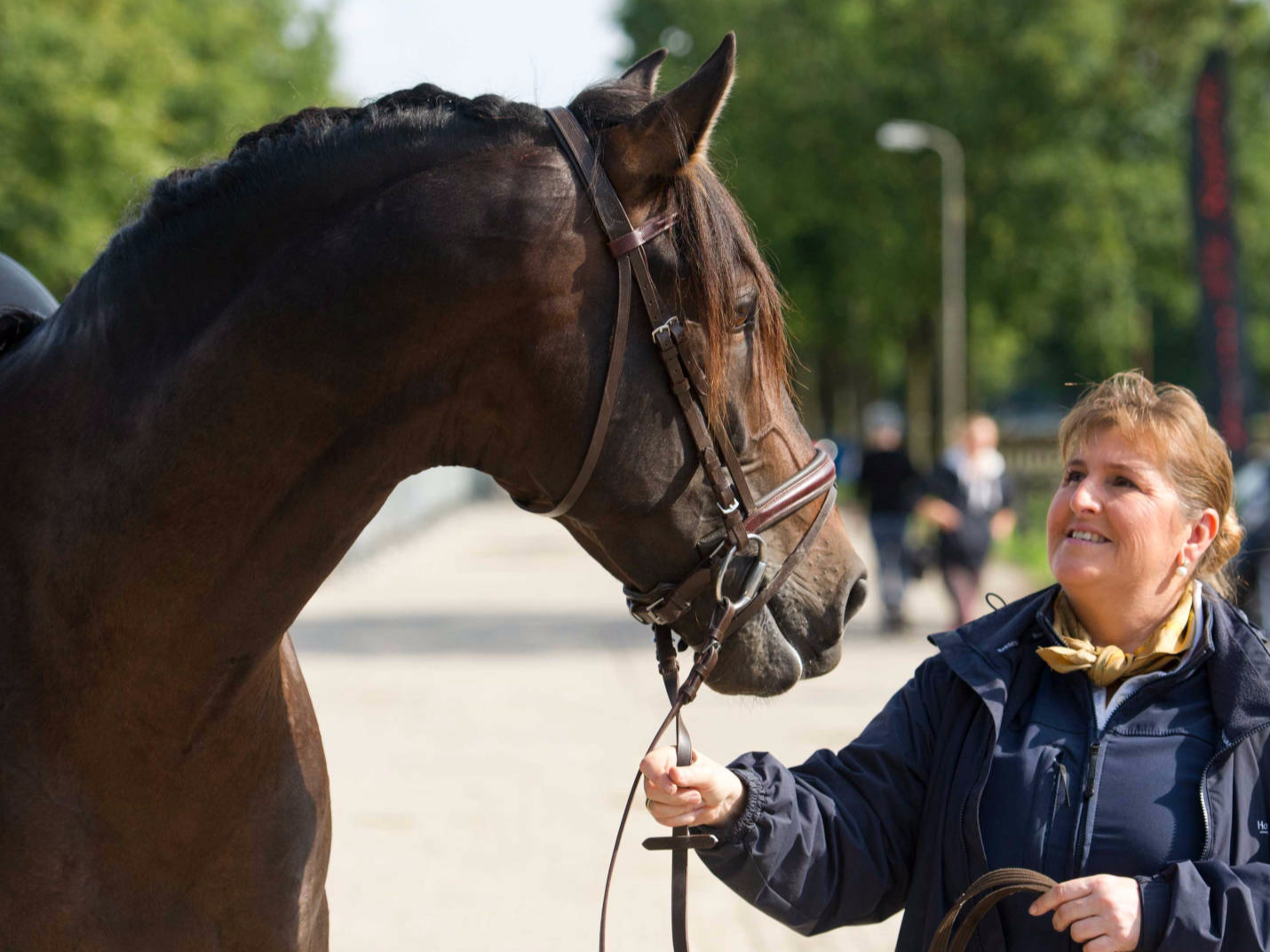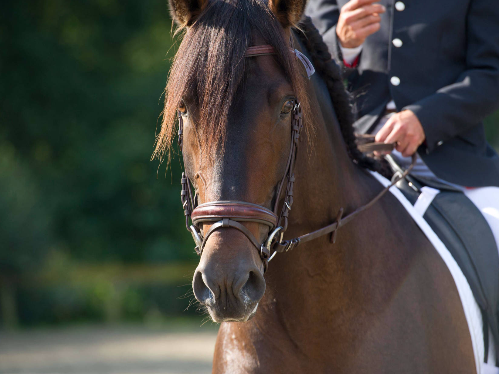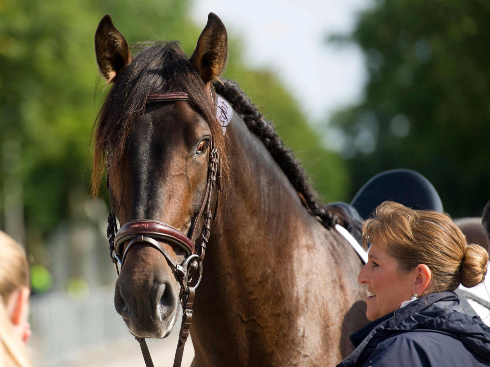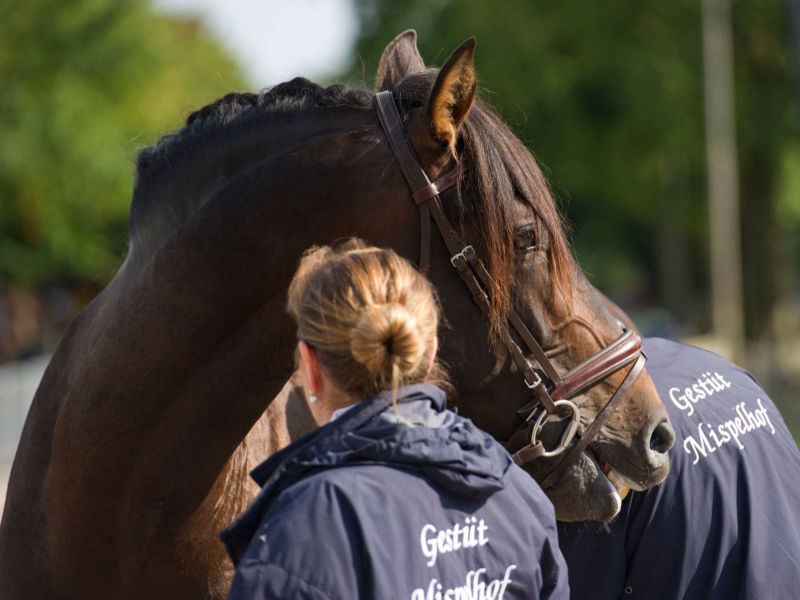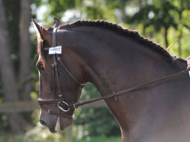 Sanftmütiger, verschmuster Hengst mit traumhaften Bewegungen in toller dunkelbrauner Farbe mit Goldglanz.