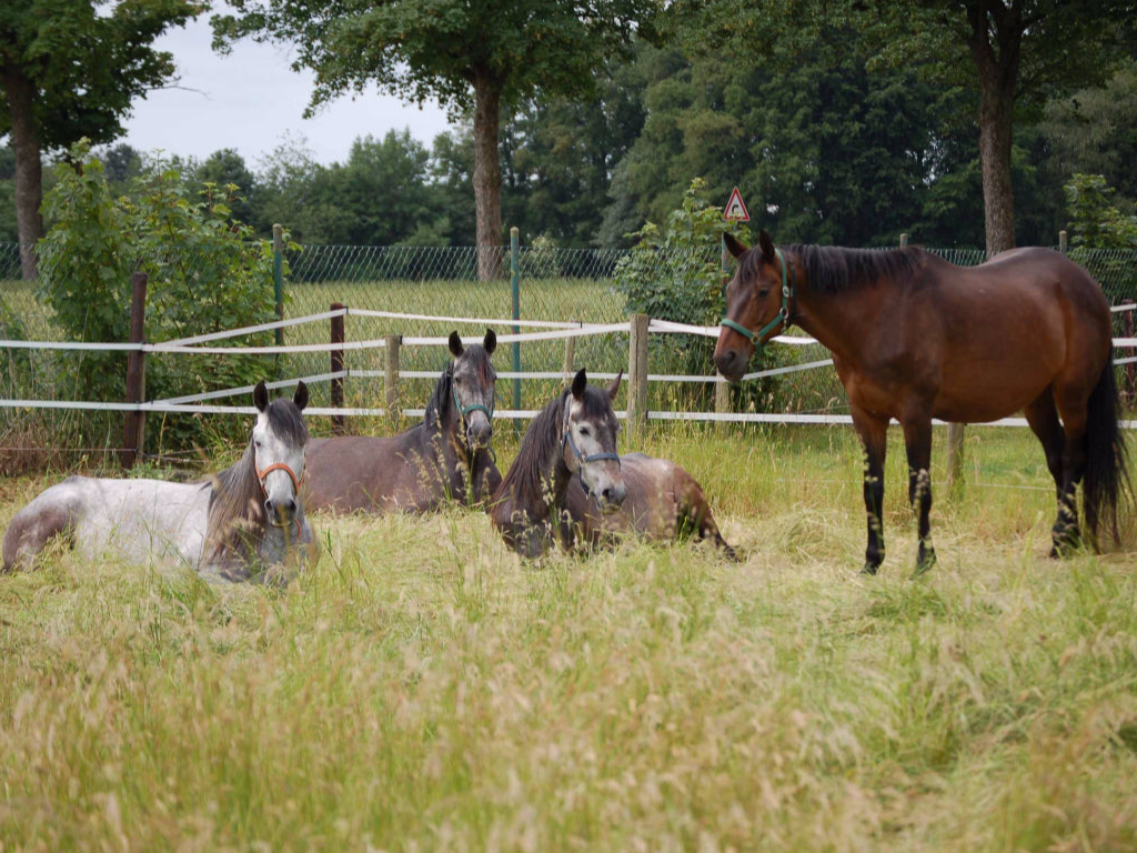 In freier Natur können unsere Fohlen auf unseren Weiden ganz unbeschwert in einer Pferdeherde ihre Kindheit und Jugend genießen, nach Herzenslust spielen und toben und sind unter unserer persönlichen Obhut.