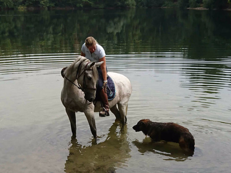 Kleine kompakte Stute mit solidem Fundament und sehr guter Balance qualifizieren sie für Dressur und Working Equitation. Sie geht gerne ins Gelände und ist dort brav zu reiten. Zirkuslektionen machen ihr Spaß.