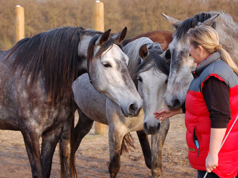 Sie ist verschmust, super fein und hat traumhafte Bewegungen. Sie hat manchmal ihren eigenen Kopf wenn es um das Thema rein holen geht, dann folgt sie aber ohne murren. Ihr Temperament steht ihr bei der Arbeit manchmal etwas im Weg damit muss man umgehen können. Sie ist immer fleißig und lernt super schnell. Sie ist die Herdenchefin allerdings im Umgang mit dem Menschen ordnet sie sich brav unter.